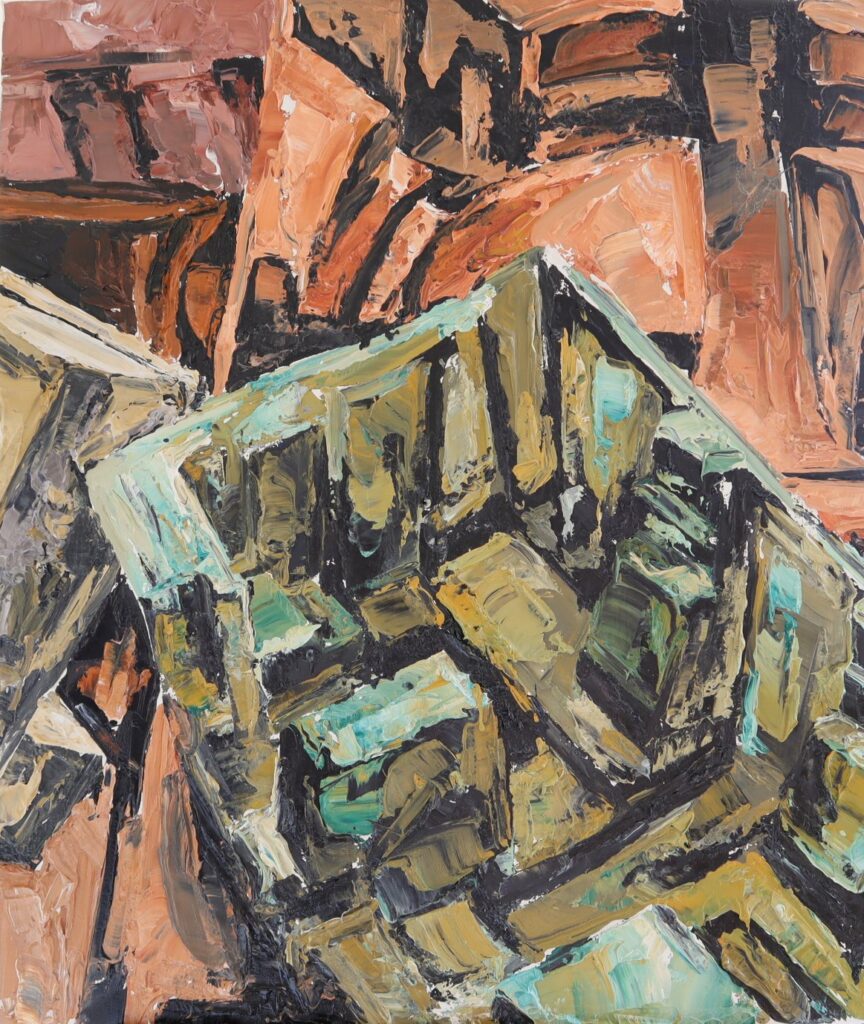 Vert émeraude, ocre jaune, jaune, rouge de Mars, rouge de Mars transparent, terre verte et de Cassel et noir de Mars coupè de bleu de cobalt.