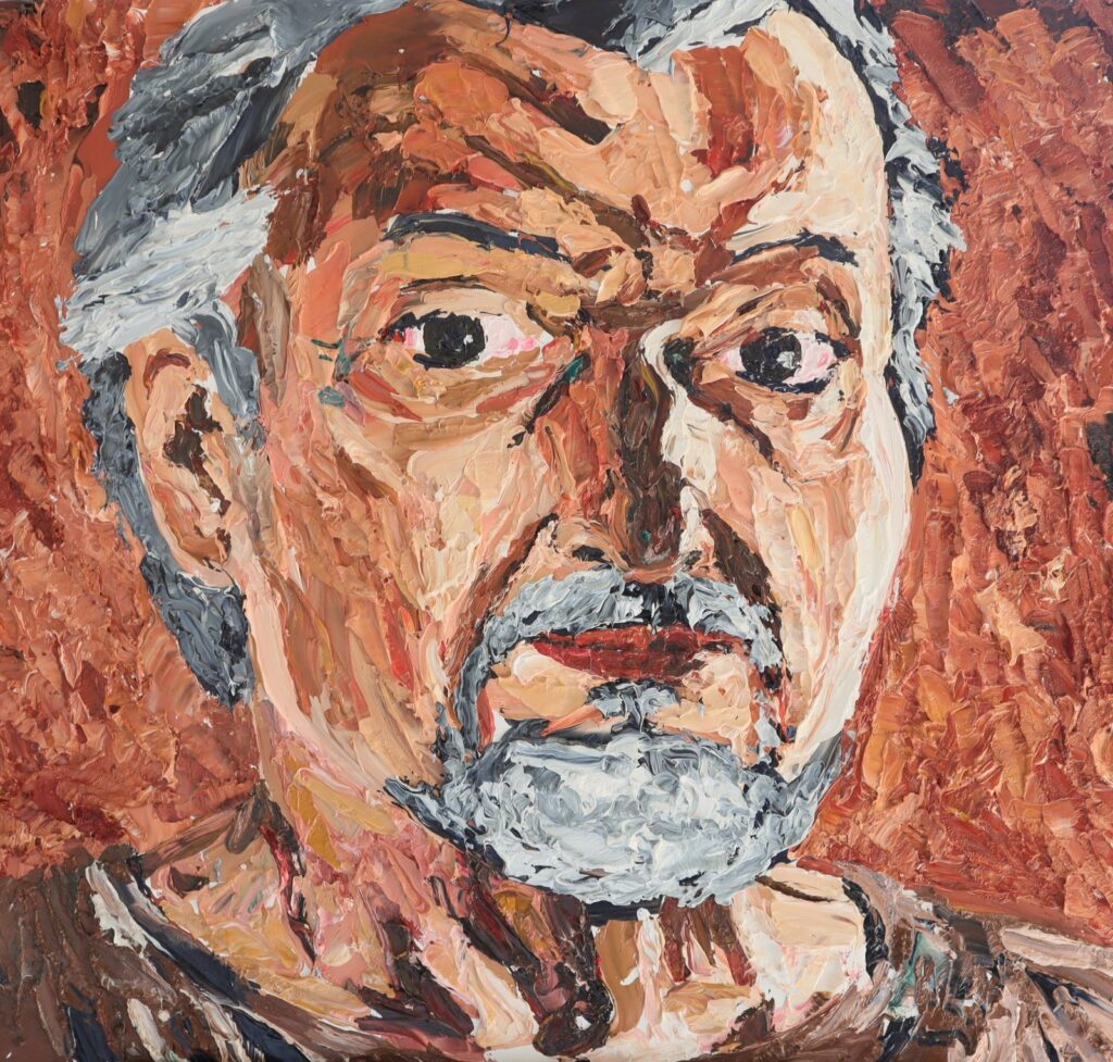 Pylore rouge et rouge cadmium, ocre jaune et brun transparent, brun et rouge de Mars transparents, noir de Mars et bleu de cobalt, blancs de zinc et de titane.